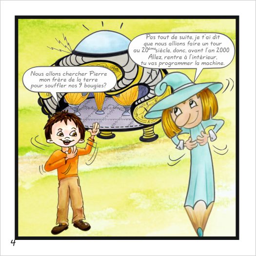 2B dessine une machine à voyager dans le temps, il invite Milkayou à s’y installer et HOP ….. les voilà partis explorer le passé.